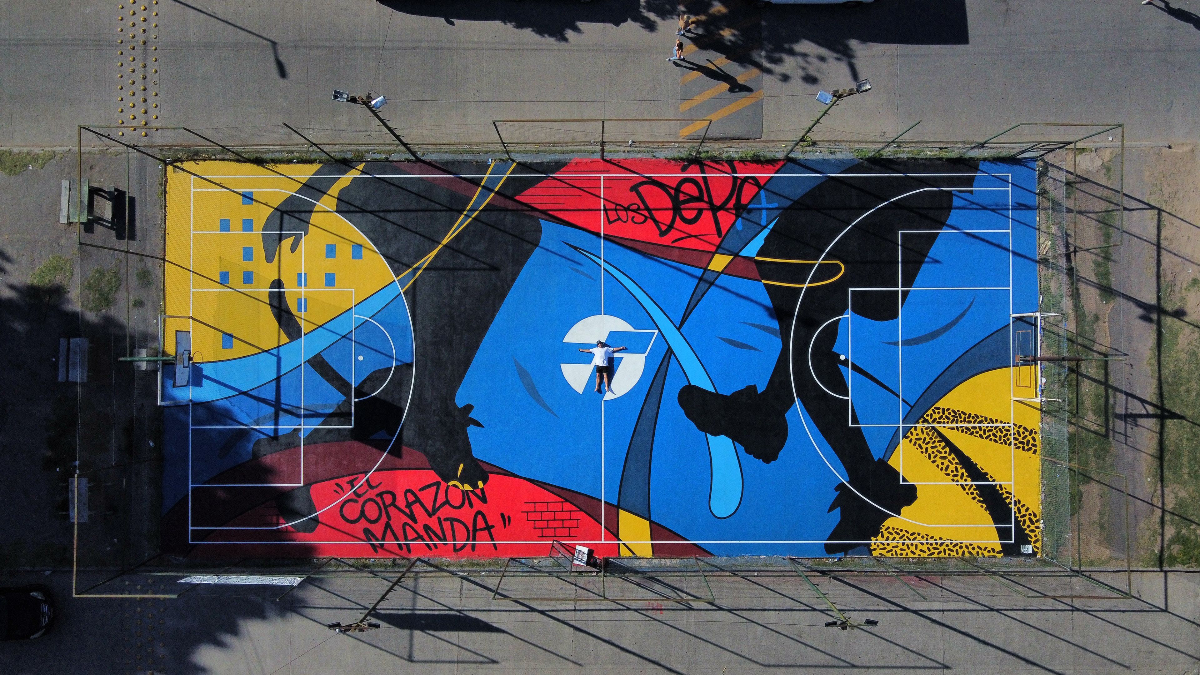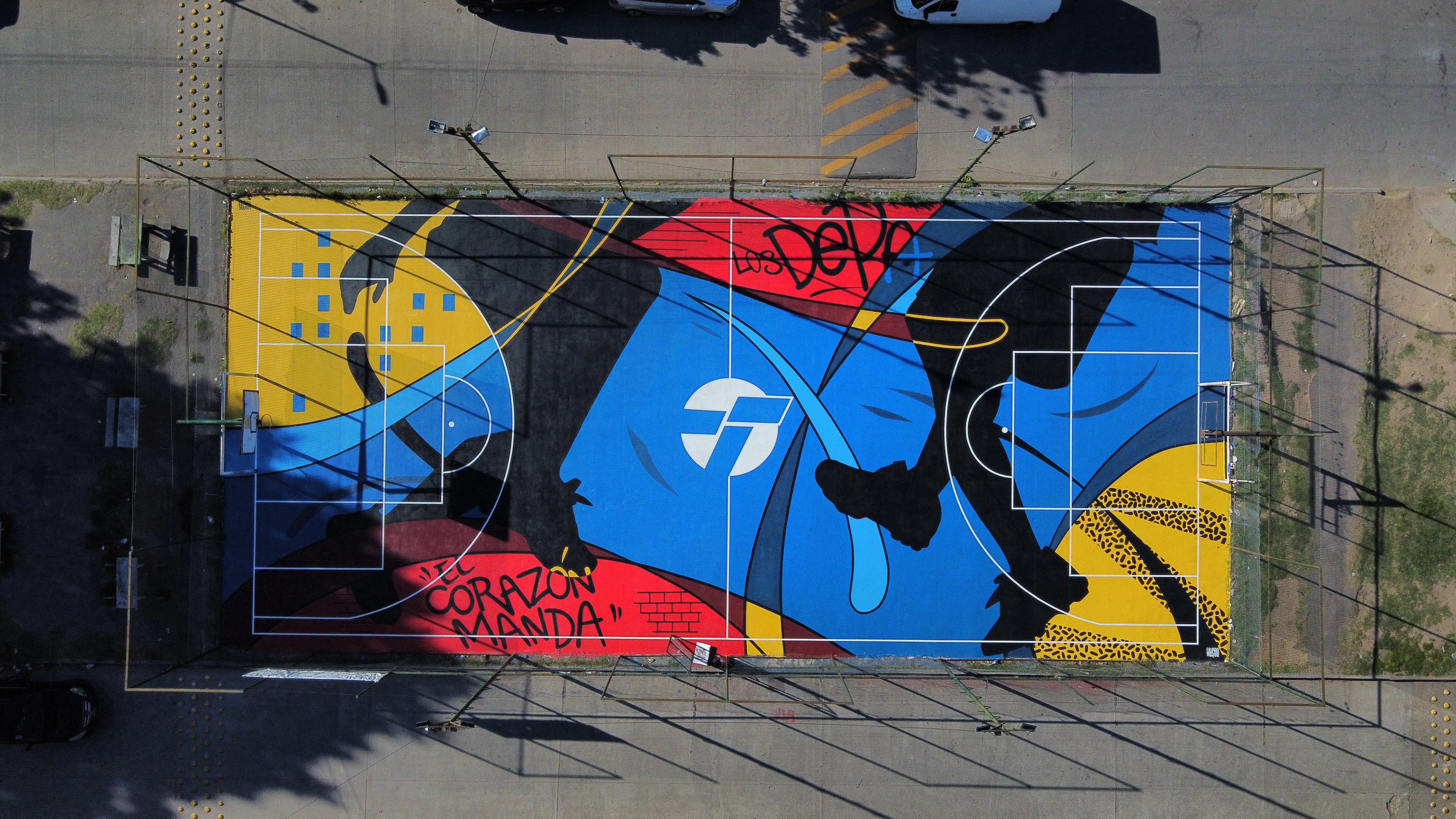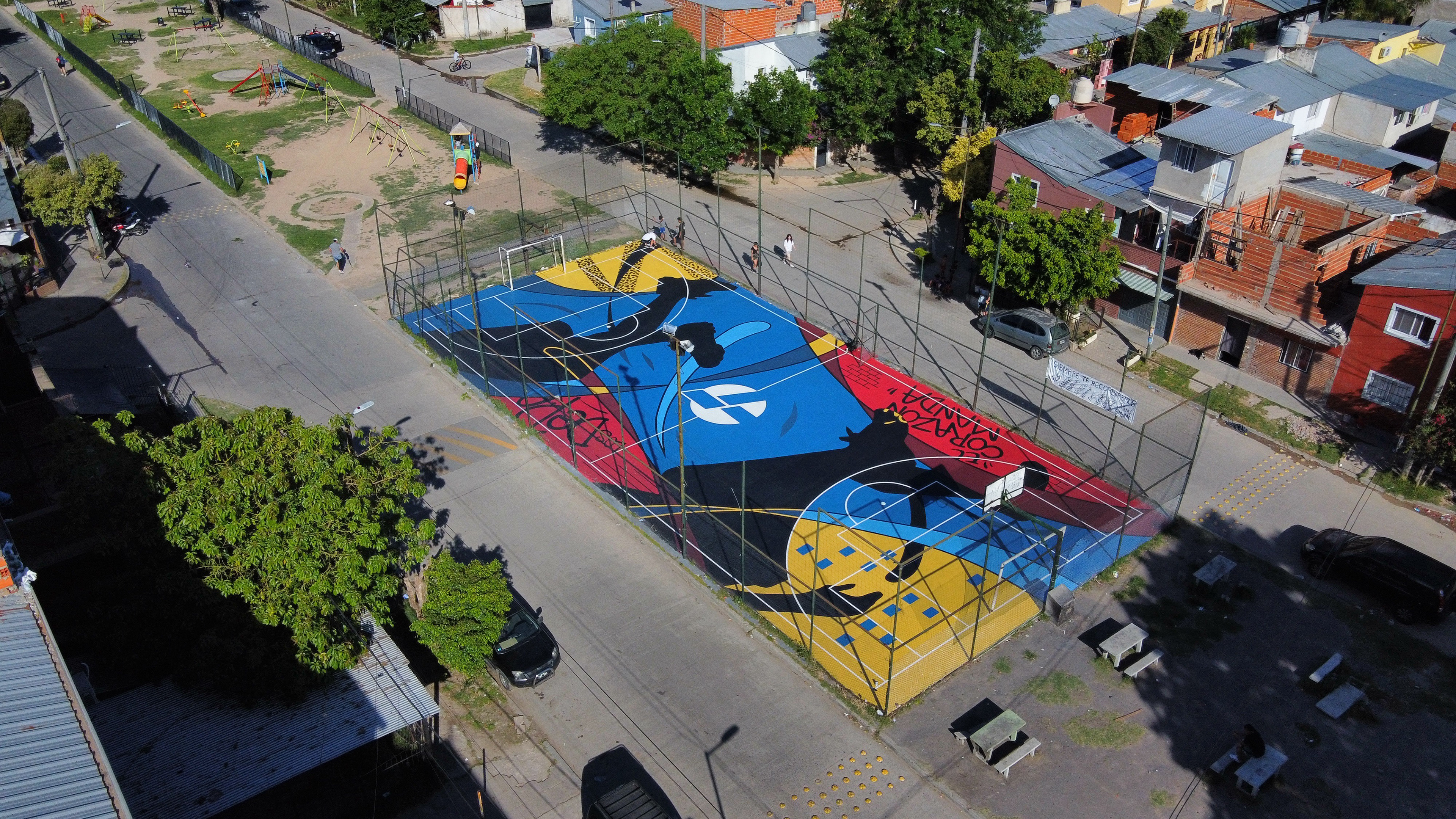 sp/ Intervención de una cancha de fútbol 5 en el barrio “Los depa” al lado de “La Cava”, San Isidro. Proyecto que trabajamos juntos con Suena eh. Colaboraron: Tekaz y oblak. en/ Intervention of a 5-a-side soccer field in the neighborhood "Los Depa," next to "La Cava," San Isidro. A project we worked on together with Suena eh. Collaborators: Tekaz and Oblak.